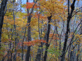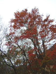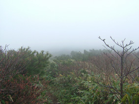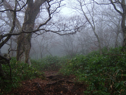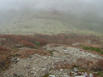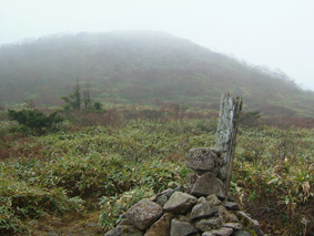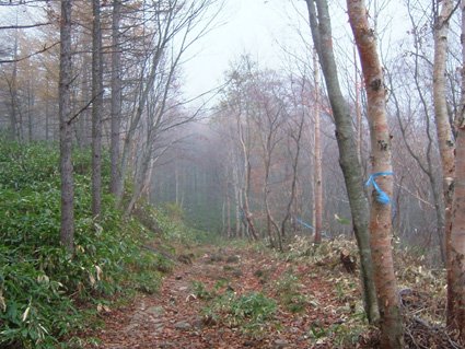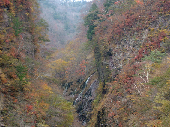 ![]() 移動途中の景色 カラマツの紅葉 晩秋の林道(大峠) ![]() 鮮やかな錦絵 天高く燃えるモミジ 日暮滝 ![]() 顔を出した三倉山 カラマツ林 ![]() ナナカマド 遊歩道の分岐 一里塚の碑 ![]() 登山道の景色(落葉) ![]() 大峠の分岐 ケルン 風避けの窪地で休憩 ![]() 流石山のピーク ![]() ![]() 稜線の道 五葉の泉 ![]() 風とガスの中を大倉山まで到着(寒いのでウイスキーを二盃飲む)此が下りに利きました ![]() ![]() キスゲ小沼 下山路から大峠がうっすらと見えた ![]() 大峠の地蔵さん 流石山方面 三本槍方面 ![]() 下山路から唐松林 あまりにも上品なモミジの赤 ![]() 旭嶽の麓を探索していたら大倉山方面の稜線が現れる 下山路の熊棚(ナナカマドの木が手繰り寄せられて折れてる) (>_<) 下には大きな熊の落とし物がありました!! ![]() 旭嶽の切れ落ちた渓谷の紅葉 帰り道に寄ったラーメン店(マジに美味しいです) 那須岳に連なる流石山〜大倉山に天候が悪いと言う予報の中出かけました 登山口までの道中の紅葉は見事な彩りで途中下車が何度となくあり写真に納める 登山口に着くと一台の車が駐車 こんなに天候が悪い情報の中ものずきが居るもんだと独り言・・・自分は (笑) 登山口を進むとすぐに鏡沼に至る道標と木道の階段が現れた 登山道はゴロ石を並べたような道が続く 木々は落葉した木と晩秋に彩りを残してくれてる木とが五分五分位に見られる 登るに連れてガスが濃くなり視界が悪くなる 大峠の分岐に着くと白一色の画面に変わる 数十メートルの視界で 殆どが足元の景色のみを楽しみながら流石山に登る 風が強くなる ガスが霧雨状態になり体に体当たり合羽がバタバタと音をたてる ザックのひもが靡き顔に当たり痛い 足元を見て黙々と登る 上の方に人の気配 見上げると単独の登山者が下りてきた たぶん駐車されてた車の方だろう、寒いですね・・・と声をかけると・・・ 何も見えないので流石山のピークまで行き帰って来ましたと話される 何処までと聞かれて 私は大倉山までの予定ですと言うと午後は天候が崩れる様なので 気を付けて下さい//そんな会話を交わし別れた!! 稜線に近づくに連れて風が強くなる 顔が冷たい 頬がこわばるのが解る 流石の山頂近くで休憩をした 何故か行動食を頬張ると顎が痛い寒さのせいだろう ピークを過ぎてもガスと風の攻撃は止まない 遠望は無く足元の笹が靡き風が語りかける 「こんなに寒い日に何が良くて来たんだい」とでも言ってるのか? 下山していった方の気持ちが分かる稜線歩きになる 途中に在る五葉の泉とキスゲ小沼だけが展望に加わり視線を落とすことが出来た 後はウグイスらしき小鳥が数羽 私の前で飛び回り遊んでくれた 展望のない一人の山歩きには仲間は何でも良い(熊と蛇はお断り)・・・(^_-) 大倉山に着き窪地で休憩をする 何とか風を遮る事が出来た 行動食を食べて昆布のお供と来ればお決まりはアルコールが付いてくるSEI ストレートのウイスキーを二盃飲み体の心から暖める 旨い・・・ん〜 これだから止められない なんだか解らない独り言 ピークの一時でした。 下山はただただ歩くだけ 何も見えない稜線 横殴りの風 無心に歩く事が出来る時 登山に欲しい時間・・それは無心に成れる時・・・SEI (四季一年を通し 雨の日も雪の日も晴天の日も歩くと必ず無心に成れる時間が在る) 大峠を越して石のゴロ道に出てすぐのナナカマドの木を見上げると熊棚が在り 上部の枝が数本折られて一カ所に集められてる 小さな熊棚だが間違いなくこの周辺には熊が出ている証拠です 道には大きな熊の落とし物がナナカマドの実の残骸と共に在りました。・・・回りを見渡す 登山口に着き時間を見ると未だ11:50分 このまま帰るのはもったいないと 旭嶽の麓の紅葉狩りに道草と洒落込む 荒れた林道を登ると奥に広いスペースが在りました そこから見る旭嶽の切れ落ちた岸壁と渓谷に張り付く紅葉は凄いの一言! ここまで来る人はたぶん居ないのかな〜と渓谷の紅葉に見とれました 今年最後の紅葉登山に成るのかな・・・SEI 戻 る |