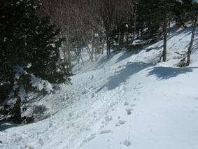 夏道に取り付き蓬莱山の斜面に登る ここも美味しそうな斜面がある