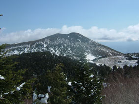 山頂には雪が殆ど無い 数十人の登山者が思いの行動で動く姿が在る