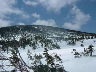 木々に凍り付くエビの尻尾 まだまだ山頂は厳冬期の様相が見られる