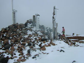 家形山の山頂は雪が無い 記念写真&休憩の一時は当然ビール!