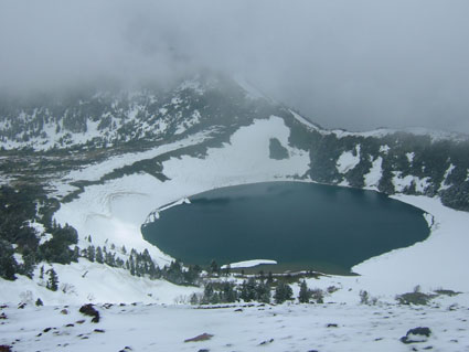 五色沼の下りは残雪歩き 時々雪面が抜けて面白い・・(>_<)・・かな