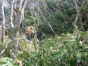竹の藪は滑り灌木は行く手を拒み斜面に難儀・・・楽しみな藪漕ぎダ!!