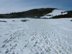 未だ2〜3mの積雪 熊の足跡(直径13cm位)