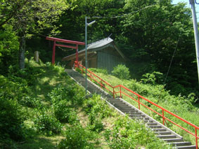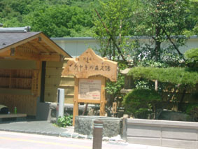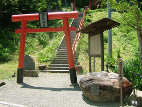 駐車場に隣接する足湯 遊歩道入口に奉られてる神社
