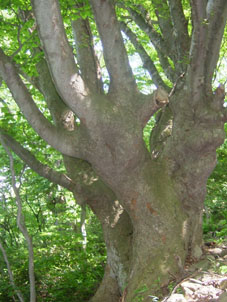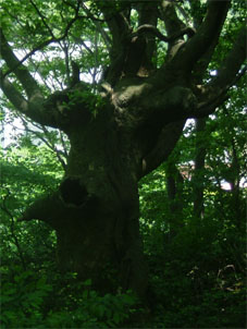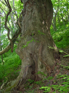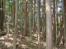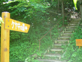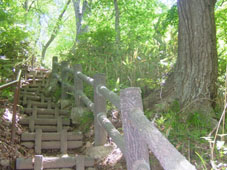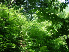 四阿遊歩道から上がり、ロープを超え山道を登ると原生林が現れる