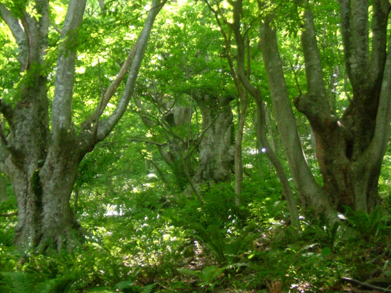 (ここの吾妻屋より上は通行止めに成ってる)がロープを越えて山道を行くと原生林に出ます。