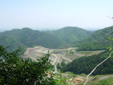 山道 ピークに在る看板「604m」 ピークより砕石場