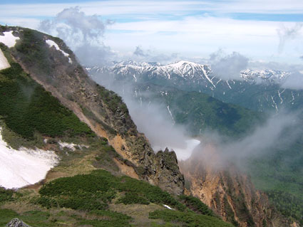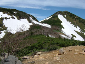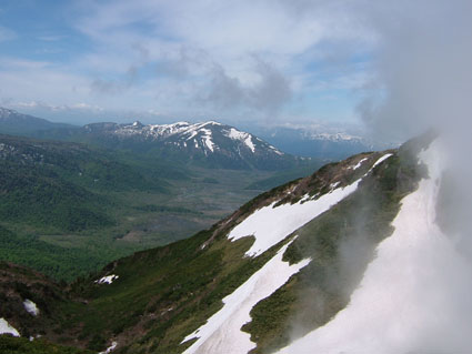 燧ヶ岳に訪れたのは去年の6月20日以来です 去年は残雪も殆ど無く夏道歩きに終始したのを思い出しながら歩きました 今年は御池駐車場に雪の壁があり 燧裏林道分岐をすぎて間もなく雪渓歩きになる 雪渓歩きは楽だが滑る・・注意が!! アイゼンを付けるほどでもないと中途半端だ 時々抜ける雪渓にウワ〜と声が出る???何事もなく歩く・・・SEI 駐車場には多くの車が駐車されていたが登山者には会わない 早出したのかそれとも尾瀬沼側からの登りなのか? 広沢田代で休んでると3名の登山者が下りてきた 今度は御池登山口から登って来た単独の登山者が2名追い越して行った 休憩もそこそこに立ち去る姿 元気なお人だな〜と見送る (^-^) 湿原には小さなミズバショウとショウジョウバカマが咲き始めてた ワタスゲの頭も大きくなり間もなく一面を白く彩るだろう 花の季節には未だ早いようだ!! 木道を進み樹林帯に入ると雪渓歩きになる 数メートル雪が残る場所が多く これからでも山スキーが出来るとルートファイデングをするSEI 見上げると空間が現れる 熊沢田代に着いたようだ 1m位の段差を登りヒョッコリ頭を出すと燧ヶ岳の勇壮が現れる 白い溝がいつもの年より 鮮明に浮き出てる 残雪の絵模様が残る山肌に季節の遅れが見られた 急登の谷に残る雪渓を3本渡りいよいよ山頂だ 張り出した樹木のアーチを潜り岩場に出る 山頂でくつろぐ登山者の声が聞こえる 大きな岩にしがみつき一力入れて上がる そこには東北の最高峰360度の展望が約束されていた。 ガスが悪戯する”カメラアングルに白い影 あ〜残念とため息を!! でも安心出来る今日の天候、数秒でガスの意地悪から解放され 山頂の楽園に歓喜が聞こえる 汗まみれの体は直ぐに冷える ウエアーに身を包み防寒し食事をとる ビールに少々の日本酒を頂く つまみに定番のガーリックパンとソーセージ とても合う組み合わせに一時間の休憩は短く感じました 山頂を後にして尾瀬沼に下る 長英新道の長いだらだらと続く登山道を思い出し気合いが入る テンポが速くなる が 途中のお花さんがお休みくださいとばかり咲いている 可憐な白 薄紫 黄色 など道草には有り難い呼びかけを無駄には出来ない 小さな花に向けられるレンズ 恥ずかしそうに下を向く花弁に苦労をしてシャッターを切る 雪解けの水が音を立てて流れる登山道 時々雪渓に惑わされてコースを見失う 笹藪を越えてルートに戻る 長〜い 長〜い 下りも終わり尾瀬沼に着いた 木道に出ると大勢のハイカーが探索を楽しんでいた 巻き込まれて歩くのに苦労をする 沼には数種類の花が咲き登山道には無い賑わいを見せていた 休まずに沼山峠の終点に向かう 峠の休憩所には溢れんばかりの人が右往左往 大型バスの送迎を待つ人や待ち合わせの登山者なのか ここでも休憩をとらずに御池に下りました 国民宿舎御池ロッジにて風呂に入り(500円)帰途につく 天候に恵まれた一日でした・・・・SEI・・・・ |