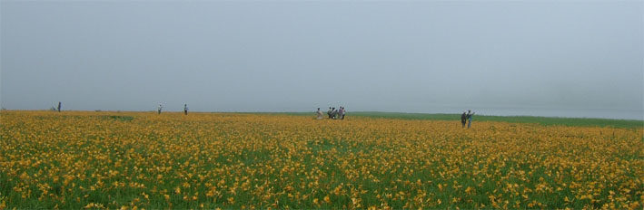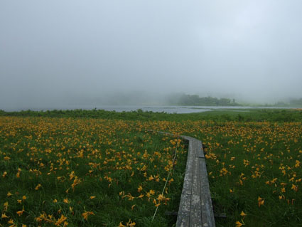 ![]() 雄子沢登山道 大きな図体 ![]() 間もなく休憩舎 分岐の道標 雄国沼休憩舎 ![]() 遠望の景色 ハイキング路のニッコウキスゲ サクランボ ![]() 可憐な一輪 ![]() 案内板 ![]() 大湿原に咲くニッコウキスゲ ![]() 沼の木道に寄り添うハイカー ニッコウキスゲの軍団 ![]() 埋め尽くされた木道 鮮やかな黄色 ![]() 案内板 ん〜〜〜綺麗 」平日にも関わらず多くのハイカーが (*^_^*) 長〜〜〜い階段 峠の駐車場 ![]() 峠の展望台 ハイキング路より沼の辺 ![]() 川上の石窯 現在の離屋の風景 ニッコウキスゲを見るために雄国沼に急遽足を運ぶ・・(>_<) ぎっくり腰で不自由な体を治すには荒療治しかないと限られた時間で沼を往復する事により整体を!! 馬鹿なことを考えるSEI・・・笑 AM11:00に雄子沢登山口に着き早々GO−と駆け上る 雄国沼休憩舎までは3.2km12:00に休憩舎に着きハイキングコースの沼を半回する道に辿る 砂利道の遊歩道を金沢峠へと進み途中から遊歩道に下りる 遊歩道には数輪のニッコウキスゲが咲いていた 沼に在る木道に着くと大勢のハイカーがざわめいて居た 黄色に引かれた花のジュータンに 歓喜の雄叫びで在りました 望遠レンズを覗き込む人 携帯電話でカシャリ 記念写真のポーズと それぞれの姿がざわめきの波に揺れて霞む湖畔に彷徨っていた!! ニッコウキスゲの盛りは既に過ぎて今週が最後と感じる様にポツリポツリと湿原に落ちている。 木道の休憩場所でおにぎりをパクリと2個&お茶で約10分の休憩 後は休まず駆け下りる、登山口にはPM1:45到着した 川上の離屋に回りダッチオーブンの吊り金具を取り付けた 火入れの為に石窯の点検をする 今日の火入れ式が天候の関係で延期になり まだ活躍が出来ない石窯「少しの辛抱」に労をねぎらう! 残り少ないニッコウキスゲの花盛りの巻き・・・終わり・・・SEI 戻 る |