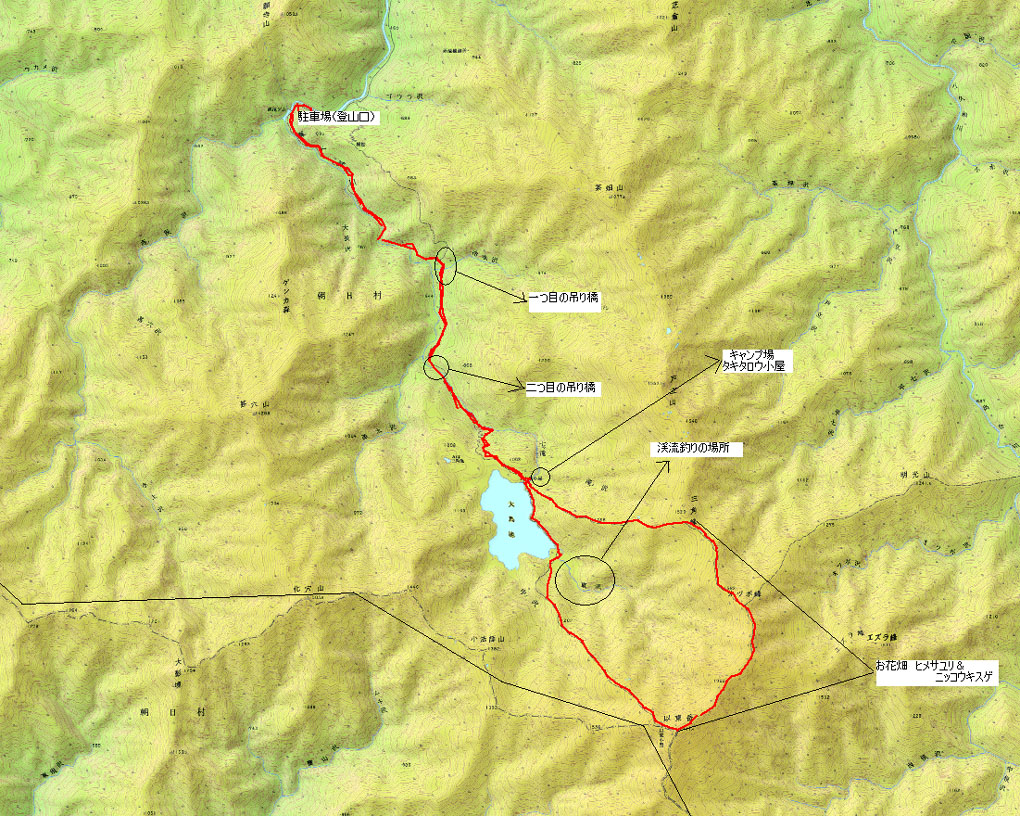 「16日」 泡滝ダム AM9:10〜タキタロウ小屋12:45〜休憩〜テン泊準備