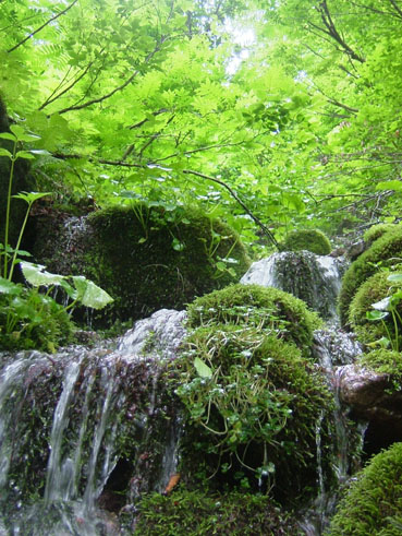 天候(曇り) 小さな滝とミズナ