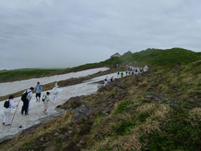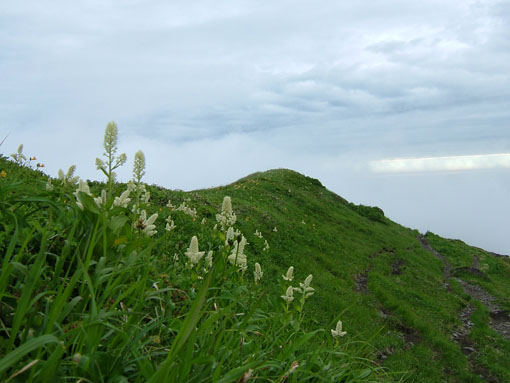 24日月山 月山の夜明け ![]() 山頂小屋とバイオトイレ 小屋の道標 ![]() 月山山頂神社 山頂よりの展望 1909mのピーク(稜線に咲く花) ![]() 月山山頂を望む 残雪を登る登山者 いろは四十八沼 起床AM1:00寝ぼけ顔でおはようございます 2:00には宿坊を出る バスに揺られて月山8合目に着くAM2:50 早速身支度を済ませて登山道を出発した 暗い夜道に懐中電灯を照らし登山道を進む 木道を渡り いろは四十八沼の在る 湿原を渡りいよいよ岩場の登山道 加工された石や岩が並べられて 歩きやすい 所々水たまりが在るが苦にはならない程度だ! 仏生池小屋に着くが休まず登る 先頭を登る参拝者に追いつき挨拶を交わし 先行させていただいた。途中で日の出の時間 ガスが赤く染まる 短い時間では在るが太陽も顔を出したので手を合わせる「お祈り」パチパチ 山頂に在る月山本宮神社に着いたのは一番目の様だ 神社の係りの方が現れたので杖に焼き印をお願いした 後続の仲間が着き合同でお参りを済ませた。 山頂に在る小屋で冷えた体を中から暖めるために熱燗を一杯頂く ウメーと声を出してしまうSEI 何時の時もお酒は美味しい 至福の時が過ぎて下山 山頂を後にしました お花は少ない 残雪は例年よりは多いそんな印象が強く残る三山巡りでした。 (>_<) 登る途中に携帯電話を落とす が 戻り竹笹の中を探し 数十分かけて見つけた あ〜〜良かった 今年は運が良いかな (^O^) 戻 る |