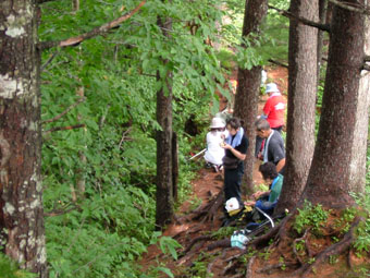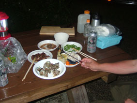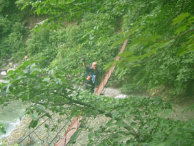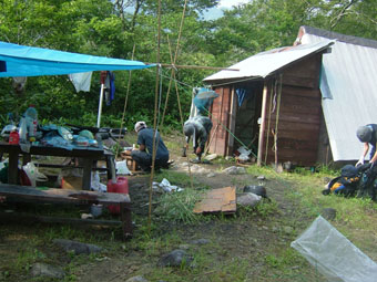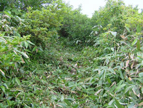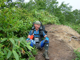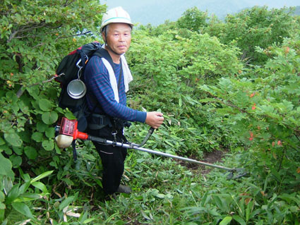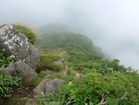 ![]() 登山道道標 吊り橋を渡る 分岐へ ![]() ボランティアによる登山道の刈り払い(休憩のメンバー) どんよりと雲間に浮かぶピーク ![]() 絶不調のSEIが休憩 美味しそう? 1239mピークの大岩 山頂への辿るニセピーク(なかなか着かない) ![]() 角楢小屋(山さん) 刈り払いの済んだ登山道 山さんご苦労様でした(山頂から下り刈り払いをする山さん) ![]() 山頂で休むSEI 山頂の様子(誰もいない) ![]() 山頂直下の登山道 雷の被害を受けた巨木 ? 吊り橋のSEI 丸太橋を渡る ![]() ![]() 角楢小屋(刈り払いのメンバーが夜の食事の準備) ![]() ブナ林 キャンプ場のネジレバナ ![]() 豪華食卓(焼肉・サザエ・牛タンなど) 白い森オートキャンプ場 キャンプ場の前を流れる荒川 三時起きで山形県小国町に在る登山口から祝瓶山へ登る 荒川に架かる吊り橋を渡り分岐へ 分岐からは急坂の連続になる 沢を流れる水の音を聞きながら滑りやすい山肌を進む 花の季節は過ぎたのか花も少なく感じられた 曇り空で日差しは遮られ歩きやすい しかし絶不調のSEI黒い顔が青白い?? 十分休んで一休みと休みが多い (>_<) しかしビールは旨い不思議だ!! 一時間ほど登ると登山道を刈り払いしてる山さんのメンバーが休憩していた 重い刈り払い機を担ぎ上げて登山道を安全に登れるように整備して頂くメンバーに 改めて感謝致します 「有り難うございます ご苦労様です m(_ _)m 」 体調不十分のSEI足取りが重い 蒸し暑く汗がしたたり落ちる 1239mのピークに着くと山頂までは直ぐそこである 休憩してると山頂方面から がやがやと大勢の声が聞こえてきた しばらく登ると中学生の団体とすれ違う 元気がいい スニーカーに運動着で登って来たようだ 切れの良い挨拶に元気を頂きました 後に続き8名位??の登山メンバーさんが下りてきた 中に東北MLのメンバーさんが居たようである (^O^) ど〜もでした!! 山頂まで直ぐそこの場所で刈り払いをしてる山さんに会う 重いザック(燃料・他が入ってると思われる)を背負い機械を操る姿は逞しく精悍に見える SEIですと名乗り暫し話をさせて頂きました そこで私たちの後を登って来る親子三人さんが 東北MLのメンバーであると山さんの話で解りました。 山頂に着くと急に雨が降り出した 長居は無用と ソーセージをパクリとほおばりビールで乾杯 記念写真もそこそこに下山 山頂をあとにする 何も見えない山頂と稜線歩き それでも満足度は何時もと変わらない不思議な山の世界 何時の時期も何時の山も新しい発見がある 感じることが大小に関わらず又訪れたい素晴らしい世界!! 山さん始め多くのボランティアの活動や子供達の溢れるエネルギーの新鮮さなど・・・など 下山は雨の中 数匹の長物が登山道に現れる ウヒョーと後ずさり (>_<) そんなこんなで分岐に着き角楢小屋に向かう 疲れた体(不調のSEI)に小屋までの道のりは長〜い 吊り橋 丸太橋と渡り角楢小屋に着いた 小屋では夕食の準備がされていました 手際よく女性の方が動く姿があり 隣に居た渓流釣りから帰ってきた方のビグを拝見すると 30cm位在る大物のイワナが数匹入って居るのを見てビックリ・・・・凄い 小屋の脇にザックを置き渓流に釣りに出かける が 成果なし 腕の違いを感じることが出来た 貴重な体験でした 「餌を頂 有り難うございました」 角楢小屋を後にして白い森キャンプ場に着く 雨の降る中テン泊の準備 キャンプ場の管理人が優しい方で いろいろとお世話になりました 美味しい牛タンやサザエの壺焼きごちそうさまでした 東北の地は人柄が良い 優しい人が多い そんな出会いを有り難うございました。 「山さん ボランティアの皆さん 東北MLの皆さん 学生さん 有り難う」 ・・・・SEI・・・・ 戻 る |