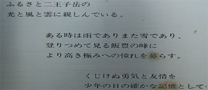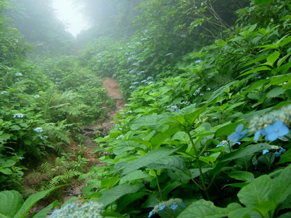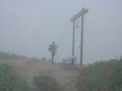 ![]() ![]() 駐車場手前の橋 二王子神社の入り口の看板 ![]() 神社脇に奉られてる清流 二王子神社 ![]() ![]() 杉林の登山道を登る 椿の実? 蝉の抜け殻 ![]() 一王子小屋 ![]() 五合目には休憩スペースが在ります 岩登り 八合目(ここから低木で視界が開ける) ![]() サンショウウオの住む池 9合目の?建物 二王子小屋 ![]() 二本木山方面が瞬時 現れた 山頂に在る青春の鐘 ![]() 山頂にて 山頂に刻まれた文面 ![]() 突然現れたサルの軍団の一匹 ![]() ニッコウキスゲが咲いていました(ん〜遅咲き?) 下山道より(新潟平野) 曇り空の下 蒸し暑い登山道を登る 清流が流れる二王子神社脇を進み杉林の中に入る こけむした木々や岩が目に付く湿度が高い山域なのか?登山道は手が加えられて登りやすい ただ登山者は2名しか見あたらない あまりメジャーではないのか? (テン泊して次の日の朝に解ったのがメジャーな山で在ること、数十台の車が並んだ) 登山口には案内板があり登り4時間 下り2時間30分と印されていた さほど急登ではないが長い道のりである 一合目ごとに区切り板があり2〜3〜4〜合目と 五合目でいつものビールタイム 豊富に持ち込んだ果物を食べて30分の休憩 少し休みすぎとペースを上げる 登山道はブナ林の二次林と思われる細い木々が多い 8合目に着くと低木になる 視界が開けると共に爽やかな風を体で感じることが出来た ニッコウキスゲが咲き始めた谷が覗ける 開花が遅いのではと呟くSEI 途中にはアジサイが満開 この時季はずれのアンバランスが感性をくすぐる!!! 8合目を過ぎた所で今日三人目の登山者に会う 9合目の石祠を写真に納め山頂へ 山頂は青春の鐘がガスに霞みぼんやりと映し出される 広いピークに三角点 ボーイスカートの設置した方位板と風景が目に飛び込んだ。 爽やかな風のピーク! 流れる 押し寄せる 波のようにガスが! 微かな空間に瞬時現れる峰に、表情が! ただいることに満足を頂き幸せを感じる、無意識の意識の中に! 疲れた体が解放される瞬間! だから山は止められない登ることより下ることよりこの瞬間が在るから! 途中の景色を思い出し 心ときめく憧れの道のり! 山はすべて平等に与えてくれる優しさがある! そんな山が在る限り登り続けたい! ・・・SEI・・・ 山頂で休んでいると三名の登山者が着いた これで今日会った登山者は6名 30分ほど休憩して下山していきました。 SEIはまだ下りるのは早いと一時間半の大休憩の後に午後一時に山頂を後にする 下山途中でサルの大群に出会う 子連れのサル軍団を確認し 静かにサルのを(去る)待つ 毛並みの良いボスざるらしき一匹を写真に治めた 下山口へはPM3:30到着 テント場へ 渓流釣りをする予定で今日も同じ場所にお泊まりに成りました。 二王子神社登山口への道順が解らず迷いながら夜中に着く 今回のコースに案内文を書きましたので初めての方は参考にしてくださいね! ・・・・SEI・・・・ 戻 る |