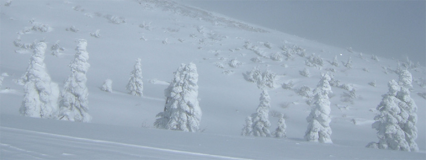 天候(雪〜ホワイトアウト〜時々日差し) 山スキー
