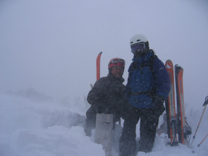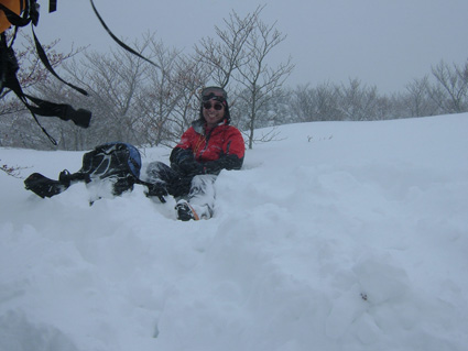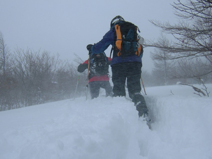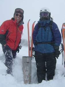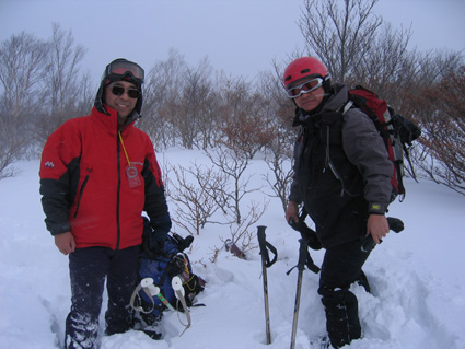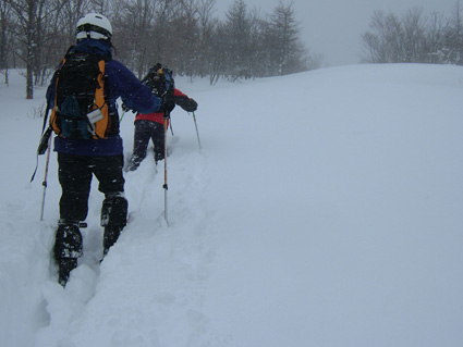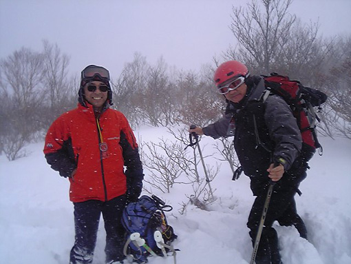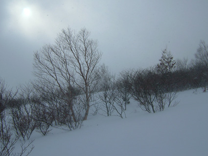 ![]() ゲレンデTOPより登り〜鉄塔まで辿り着く ![]() 膝まで潜りラッセルする ( Oさん・ごんちゃん・SEIは後方をご免なさい ) 太陽がのぞき見! ![]() ![]() ツェルトで休憩 ![]() ![]() 雪の中で( ごんちゃん・Oさん・SEI ) ![]() 山頂の雪をかき分けて道標を出しました・・・・(埋まっていた道標) ”展望なし” ![]() 山頂で記念写真 (茨城のOさん ・ SEI ・ ごんちゃん ) ![]() 小雪〜時々強風の山頂 Oさんが雪と戯れる 2006年の山がスタートした 登り始めは鎌房山 羽鳥スキー場までの道中は吹雪いている リフトが動かないときはゲレンデを歩いて登ろうか??そんな話をしての車中でした スキー場の駐車場に着いた相変わらずの吹雪 スキーヤーも少ないのか駐車してる車がまばらだ リフト券を購入ゲレンデに行くと目に入る光景は この吹雪の中を雪まみれになり滑る人 コタツの中でテレビでも見てれば良いのに・・・独り言です メットとゴーグルの隙間から出てる顔の一部が冷たい 今日は止めようか・・・独り言です ぶつぶつと独り言が多くなるSEIでした・・・笑 ゲレンデTOPから灌木林の間をすすむ 新雪が1m近くあるのか膝まで潜る 雪が意外と重く歩きにくい さらさらの雪を想像していただけに想定外・残念!! 先行のラッセルは茨城からきましたOさん 力強い踏み込み笑顔の余力で逞しく雪上にトレースを残す 次にごんちゃん SEIがしんがりで歩く姿は殆ど変わらない 雪と強風 時々吹く強い風に煽られ体がよろめく・・・・今年も天候には恵まれないのか不安になる登り始めに成りました 途中休憩はツェルトの中 強風にも関わらず中は温かく天国です バタバタとツェルトの風に煽られる音がBGMに早変わり 雑音?に近いBGMを聞きながら体を中から温めようと日本酒で乾杯しました 休まず山頂を目指し進む逞しい姿はOさん 有り難いトレースを盗み山頂にたどり着きました 山頂到着は13:30登り始めてから2時間10分経過 Oさんのラッセルが無かったらまだまだ着かなかった鎌房山頂でした 山頂は小雪と風 写真を撮り下山することにする Oさんは雪と戯れ雪穴を掘る 寒風の雪原で笑顔のOさんの姿は山男の勇壮にも映り感激しました Oさん短い時間でしたが有り難うございました 下山は重い雪でスキーが走らず殆ど歩きと同じだ 数カ所の斜面を板がようやく動いてくれた ホーと喜びの声を出す間もなく板が撃沈 雪に沈む・・・・・(*_*) 下山予定のコースを変えて登りと同じコースを下る 2006年初滑りでした 茨城のOさん ごんちゃん有り難うございました ・・・・SEI・・・・ ここからは大野さんから送って頂いた写真です ↓ 大野さん有り難うございます ![]() ![]() ![]() |