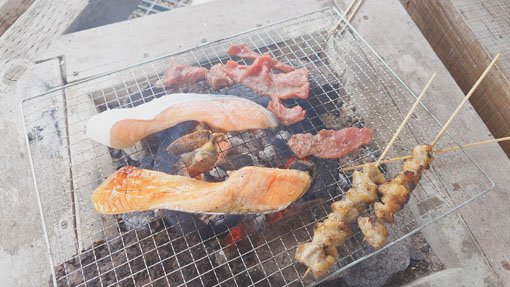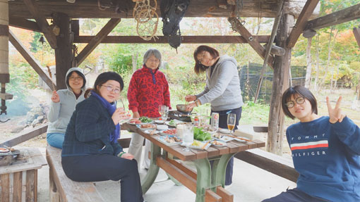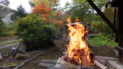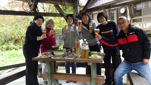 天候(曇り~雨) ![]() 色付き始めた山小屋の秋 山小屋恒例のキノコオフ会を楽しみました 天候は曇りだが気持ちは晴天です (笑) ![]() 白布山 山小屋の風景 白布山の色付きは去年より遅いようだ それでも小屋周りのモミジが赤く際立っています ![]() 山小屋のキノコ キノコ団子 到着早々 キノコ狩りを楽しみました エノキタケが団子になって出ています隣にもと声が弾む! (笑) ![]() エノキタケ スギタケ エノキタケを次々と見つけます スギタケや写真にはないがアミタケもいっぱい出ていました ![]() 焚 火 東小屋 気温が低いので焚火で暖を取ります 東小屋では料理がどんどん作られていました ![]() 午後の集い 網焼きの素材 午後に6人目の参加者が到着です 丁度いい具合に料理も出来上がってきたところだ (笑) ![]() モミジが奇麗 キノコ狩り 小屋のモミジがオフ会に花を添えてくれます 名人が採ってきたキノコを前に笑顔がこぼれるのでした ![]() テーブルに収穫物 何度目のカンパイ(笑) 収穫物をテーブルに並べて東小屋へ入ります 此処でもカンパイが強行されるのでした ![]() メンバー全員集合 ピザ窯 午後に一寸遅れて7人目のメンバーが到着です これで全員集合とまたまた乾杯でした (笑) ![]() 小屋周辺の紅葉 米ナス(包み焼) 小屋の周りは赤が目立ちます 焚火の中からは・・・ 今回初めて挑戦しました米ナスの包み焼が完成だ チーズをたっぷり挟んだナスを開けると 熱々の湯気の中から出てきたのは柔らかな蕩ける様な味のホンマモンでした 美味かったな ^^ ![]() 朝 食 露天風呂 夜中から降り続いた雨は時折強く屋根をたたきます 一晩中 止むことは無かった 寝床からはムクムクと一人また一人と起きてきます 全員起きてきたところで朝食を頂きました テーブルには味が自慢の喜多方ラーメンとキノコご飯がスタンバイです 雨音を聞きながら・・・ 昨日の出来事などを談笑しながらご飯を頂きました 皆さん キノコオフ会 最高でした 次回も楽しみましょうね~ 動画をご覧くださいね! 戻る |
