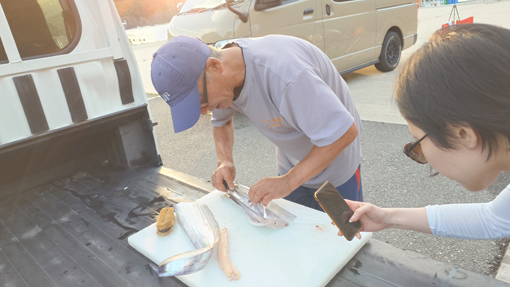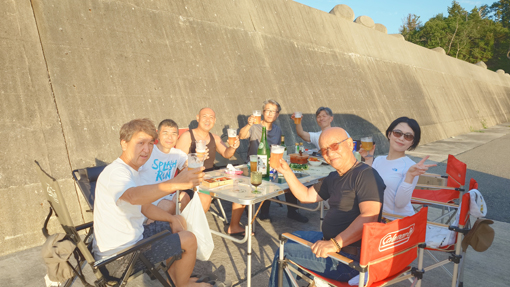 天候(晴れ) ![]() 岩井崎海岸 鋭い岩が並ぶ岩井崎の海岸 太陽の日差しを浴びた海面はコバルトブルーの輝きです ![]() 岩井崎海水浴場 横綱銅像 岩のくぼ地にできた溜まりでは多くの子供たちが泳いでいました 近くには横綱の銅像が立っています 土俵入りの形を披露する姿もありました (笑) ![]() 潮吹き岩 潮吹き岩の吹き上げが撮れるかとカメラを構えます 今だ と シャッターを切ると見事に吹き上げる潮を捉える事ができました ![]() 気仙沼ホルモン 初めて食べる! 連休中の旅で! 噂に聞き気になっていたホルモン焼があるとHiroちゃんが話す ん~ それは何 気仙沼独特の焼きと盛り付けソースがあるとわかりました それを聞いてからは行かない手はないと早々に来ました 店に着くと満席で車で待つことになります 20分くらい待つと店員さんが車まで向かいに来たので入店だ 店へ入ると店内は煙でモウモウと霞んでいます (笑) テーブルに座るお客さんを見ると・・・ 皆さん夢中になって食べているのが分かりました 出てきたのは皿に盛られたキャベツの千切りと生ホルモンです 見よう見まねで焼き始めると いい香り(ニンニク)が漂うのでした 一口食べると之はたまらん激ウマとホルモンの柔らかさが絶妙です それにタレの味が旨すぎて箸がとまりませんでした 最初は多すぎかなと思いましたが足りないくらいでした (笑) 初めて食べた気仙沼ホルモンが美味すぎて感動です 二人の美味しそうに飲んでるビールが気になるのか! 横目で見てる運転手のSeiでした (笑) また行く機会があるときは「お福」へ必ず行くでしょうね! ![]() 唐桑半島の海岸 漁港でBBQ 唐桑半島の海岸に着いた私たちは! 早々に飲む準備にかかりました ![]() 今日も元気だ タチウオの腸 軽く飲んでるつもりでも進む酒を止めることができなくなります そこへ民宿(なぎさ)のご主人が来て タチウオを捌いてくれます ![]() タチウオを捌きます 全員集合 大きな魚を捌くのにはコツがいる! 腸をとり背ビレをはがしてから三枚におろすのが大変でした その姿は見てるだけでも力が入ります 賑やかになった隣では集合した面々が飲み始め盛り上がるのでした (笑) ![]() 焼タチウオ 生きたウニ タチウオを焼きます そこへ海から上がった生ウニが仲間入りだ ![]() 之を焼ウニで食べた 民宿(なぎさ) BBQの網は品を変えて並び焼きあがるのでした ![]() ウニタワー 酒が進みます 二日目の夜は宿で大宴会となります ここでもウニが主役で他にも海の幸が所狭しと並びました ![]() 宿で再び盛り上がりました 宿を後に(Gonちゃん・Hiroちゃん・宿の女将さん・ご主人) 二日間お世話になりました宿の女将さん ご主人さま 皆さん 素晴らしい癒しの旅を満喫することができました 女将さんお土産までいただきありがとうございます ご主人さま 美味しいウニ三昧の御馳走に感謝いたします 今回はIsoさんメンバーと合流することができて 一段と賑やかに過ごすことが出来ました ありがとうございます 感謝 動画をご覧くださいね! 戻る |