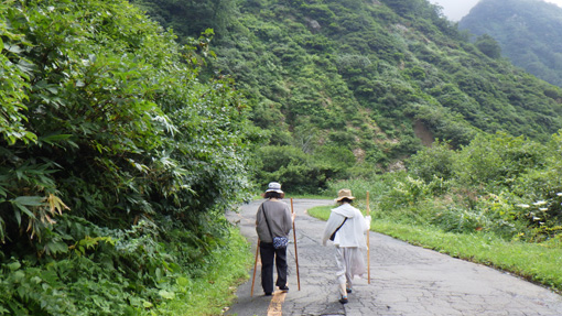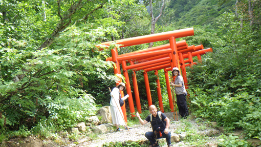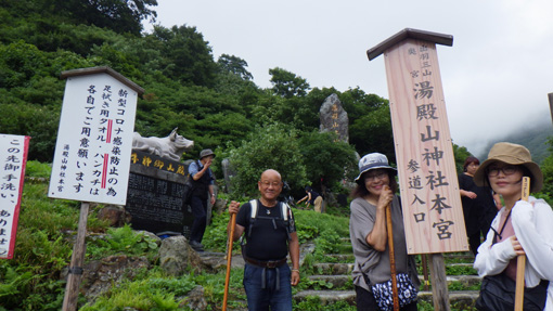 令和7年8月30日天候(曇り~雨) ![]() 湯殿山神社 初めてのお参りは平成9年でした あれから29年(29回目)の出羽三山参りです ![]() 駐車場 本宮入口 今にも雨が降り出しそうな空模様の中の参拝でした 駐車場は満車で奥に空き場所を見つけて なんとか車を止めることが出来ました 奥宮の手前で写真に納まります ![]() 奥宮(御手洗場) 湯殿山登山道 参道の御手洗場から先は撮影禁止区域だ 奥宮への参道を進み体を清めてから拝殿へ向かいます 拝殿へ向かうと2匹の青大将(神蛇)と遭遇いたしました 縁起のいい蛇との遭遇ですが悲鳴が何回となく聞こえてきます 会いたくても会うことが出来ない珍しい遭遇に感激でした ![]() 参道を下る 赤鳥居の前で! 奥宮での参拝を済ませ参道を下ります 道中にある社へ回り合掌致しました ![]() 羽黒山神社 杉並木参道 湯殿山から車の移動で羽黒山神社へ来ました 今までは7月に来ていたので月をまたいだ為か参拝者の姿が少ないです ![]() 境内の鳥居 奥に見える合祭殿 境内に並ぶ古木の杉並木を歩いて拝殿へ向かった 7月はアジサイの花が奇麗ですが! 8月は花も終わり代わりに杉の株にキノコの塊が出ていました (笑) ![]() 羽黒山神社 三神合祭殿 三神合祭殿の急な階段を上り御朱印をお願いしてから参拝です 常には御祈祷を頂く参拝者の姿が多く見られるのですが! 神事をする光景を見ることは出来ませんでした ![]() 境内に祀られる社 斎藤商店 参拝を終えて何時もお世話になっています斎藤商店へ行きます ご主人が笑顔で迎えてくれました 今年は一か月遅れての参拝ですね~と挨拶代わりの言葉です 体調を崩して入院してたなど等と歓談でした それでも休むことなく29年続けてこられたのは御利益と万物に感謝です ![]() 大好きなタケノコ汁 お泊りの宿坊 大好きなタケノコ汁を食べて英気を養う事ができました 今日のお泊りは去年に続き宿坊(三光院)です 神主のお迎えを頂き寛ぐことが出来ました 明日は月山登拝 動画をご覧くださいね! 戻る ![]() |