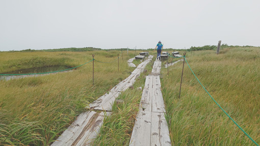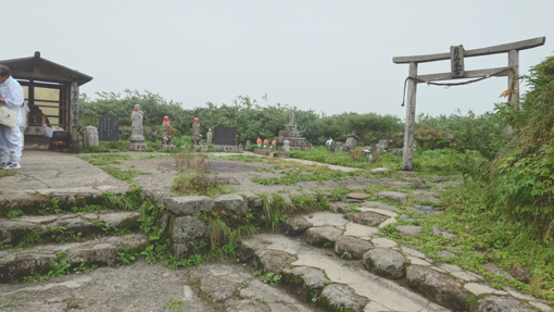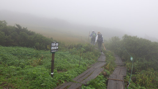 | 天候(曇り~雨) ![]() 紅葉し始めの月山 昨日に続き出羽三山参り二日目は月山登山です 4時半に起床して宿坊を5時過ぎに出ました ![]() 八合目駐車場 雨が降り出しそう(出発) 八合目駐車場に着いたのはAM6時20分です 準備をしてスタートしたのはAM6:30分でした ![]() 分岐です 直登コース ガスの中ですが未だ雨は降りそうもない! 思ったよりは蒸されない状況です ![]() 木道のリンドウ 中之宮分岐 直登コースを進み分岐に着いた 木道に咲くリンドウの花が奇麗で秋色を感じます ![]() ケルンにて! 靴底が剥がれる ケルンの在る場所を通過して大岩の坂を登っていると 岩の間に靴底が落ちていた あれ~ 之は誰かなと声がします 何と仲間の靴底が剥がれてしまったのだ 何とか応急処置をして歩けるようになります ![]() 雨が降り出した 佛生池小屋 途中は雨が降り出しポンチョを羽織りました スタートして3時間で佛生池小屋に着きます おでんや力餅を食べ休憩後に山頂へと歩き出しました ![]() 折り返し地点 疲れました(笑) 行者返し手前の大岩のある所で引き返すことにします 靴底が剥がれる・思ったより時間がかかり帰りの予定時間に間に合わないなど! 登頂は無理と判断して下山することにしました ![]() 下山分岐 中之宮 中之宮へはAM11時40分に着いた 金剛杖に焼き印をお願いして参拝を済ませます ![]() 中之宮鳥居 湿原の木道 弥陀ヶ原の木道を下ると8合目だ 今回は登頂を断念ですが月山に来れたことが満足です 29年の歳月と万物へ感謝いたします 合掌 動画をご覧くださいね! 戻る ![]() |