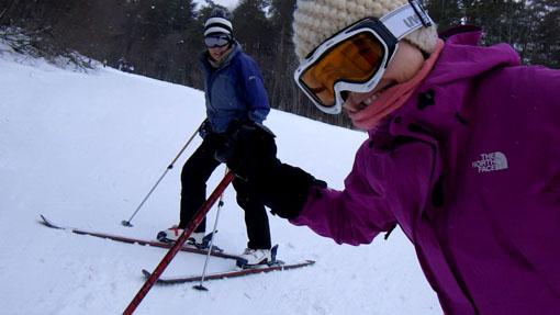 令和8年1月11日天候(曇り~雪) ![]() 眼下の猪苗代湖 積雪が少なく今日がシーズン初めての滑りです 天候が荒れると言う予報なので滑れるか心配でした ![]() ゲレンデハウス前 幸せの鐘 しかしゲレンデは穏やかだ ミネロ側のペアーリフトに乗りゲレンデ上部へ行き幸せの鐘を鳴らす 雪質は少し硬く草が露出してるところも見えました ![]() 初滑りを楽しむ二人 気分は上場 それでも滑り始めると板も私たちも喜び気分は上々です (笑) ![]() 少し硬めのゲレンデ ご機嫌で~す(笑) 慣れるまでやんわりと滑り止まっては眼下の景色を眺めます 予報と違い視界もあり楽しい! ![]() 笑顔のHiroちゃん へっぴり腰のSei 笑顔が弾けるHiroちゃんは滑りを楽しんでいると!! 何と 靴が 壊れたと プラ部分が剥がれてる靴を確認します しかし滑るには大丈夫 GO- と 斜面を蹴り滑る姿がありました ![]() 鐘を鳴らす紐が! ゲレンデは空いてます Seiが鐘を鳴らすために行きますが・・・ 紐が風にあおられ手元に戻らないアクシデント発生します (笑) ![]() 良い感じのGonちゃん 疲れました 初滑りを楽しみ午後の2時30分にはゲレンデを後にしました いや~ 疲れましたと 疲労困憊のSeiです 今日から大相撲が始まると急ぎ帰路に就いた 動画をご覧くださいね! 戻る ![]() |