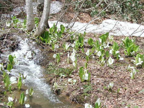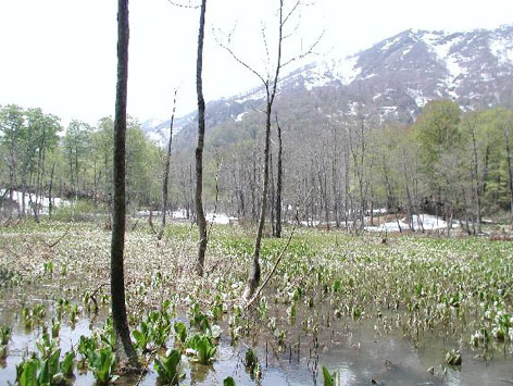 ブナの原生林の中,水ばしょうが81万本咲いていて,