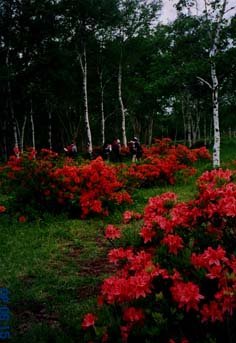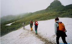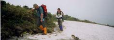 2000m近くに成ると雪渓が現れる TETUさん チョット疲れぎみ??