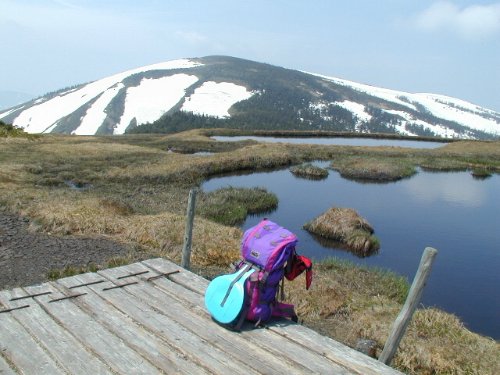 池の岳入口。姫の池越しに見る平が岳山頂。