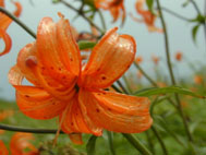一旦、下る。視界の効かない道を進む。金玉水手前のニッコウキスゲの群落は、見事