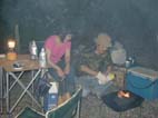周りはナラ林の巨木が見事である 早速テントの準備そしてや夜の楽しみキャンプ&酒盛りと洒落込む