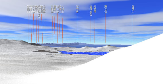 猫魔ヶ岳 山頂より245度方向を眺める 3D カシミール地図