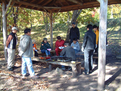 ![]() 湖畔のキャンプ場 ![]() 東小屋で食事の準備 ![]() 焼肉をKさんが手際よく (^_-) 焼いてます ![]() O 委員長が楽しそう ![]() 焼きそば奉行の大内さん ![]() 暖をとるメンバー カルシュウム補給に蝉の殻を焼いて食べたのは誰だ!! ![]() 美味しい特製焼きそば (@_@) ホントにうまがったない ![]() 参加者一同 某会のアースクリエート(株)が設計施工致しましたスロープ リサイクル資材です ※お問い合わせは掲示板へ宜しく ![]() 紅葉と川面が眩しい午後の一時 ![]() リサイクル資材で出来てる吊橋 今日のメンバーで〜〜す (*^_^*) ![]() 遊歩道 中央の黄色いジャケットの奥方は83才です しゃきしゃきのお婆ちゃっん ”元気いっぱい” ![]() 帰りに立ち寄りました天栄湯 ? & 佇む岡部さん 自然探索とアナログの世界へ 大内委員長の呼びかけで15名が参加した 観光バスにゆられ郡山をAM8:00に出発 羽鳥湖キャンプ場へと向かう 委員長の挨拶を頂き バスの中は賑わいを見せる 会員と仲間が用意された飲み物やおつまみに喉を鳴らす バス移動の楽しみが此処に現れる!! キャンプ場は少し風があり肌寒い 寒さを押しのけビールで乾杯 持ち寄った食材を手際よく準備 焼き肉が 焼きそばが そして 湖畔に生食してたキノコ(毒??少しなら安全)を焼いて食べた 盛り上がりを見せたその時 Sが採取してきた蝉の抜け殻 カルシュウム不足のOさん 焼き上げた蝉をカリカリ美味しいと食す・・・・(?_?) 参加した中に83才のお婆ちゃん(奥様) 歩く姿や食事のテンポ お話と私達が元気を頂いたのは言うまでもない 元気が一番・・今日もまた大先輩の教授を!! ・・・・何時までも元気でね・・・・ 遊歩道(ハイキングコース)〜吊橋〜キャンプ場へと戻りました 間もなく帰りの時間 今日の食材や器具の分散の為にオークションを開催(大げさかな) ビールや鉄板・ツマミなどが飛ぶように (^-^) 売れ チョット強制的なところも在りました 完売 湖畔を後にした 帰り道に在る天栄湯(入浴料¥500)に周り入浴 和気藹々の中で 今日一日を過ごすことが出来ました 大内委員長初め参加者の皆さん有り難うございました ・・・SEI・・・