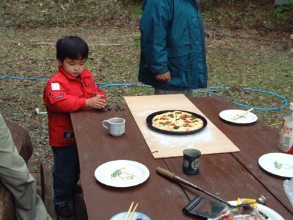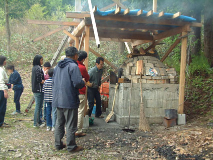 早く食べたくて見守る面々風情のある釜は味を保証してくれる
