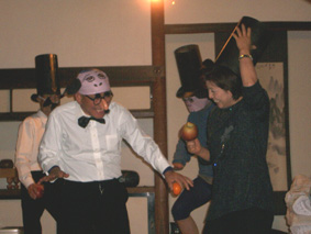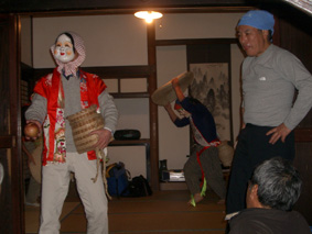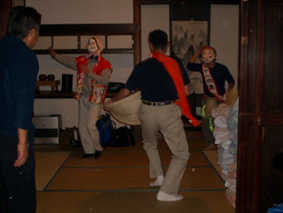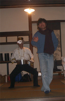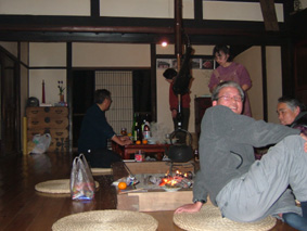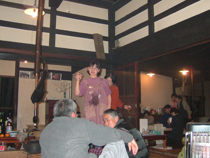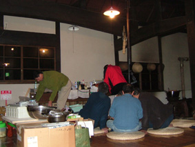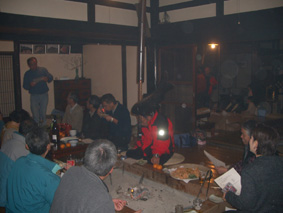 ![]() 早々会計のTAKEさんにお金を・・・ 蕎麦名人 INOさんの蕎麦打ち ![]() ![]() ![]() 初めから飲み過ぎのSEI 情緒豊かな囲炉裏 ご機嫌のKUNIさん ![]() 来年度の計画を練るリーダー会 ![]() 暗闇の中に井戸が!! 古式豊かな和風の家でくつろぐメンバー ![]() 囲炉裏でくつろぐTUKASA & NOBU ![]() ![]() いよいよ蕎麦が出来上がる INO 蕎麦名人 ![]() チャーミングなFUKUさん なにやら囲炉裏で会議が始まる のれんの掛かる仕切 吹き抜けの梁 と 裸電球 いよいよ ↓ 余興が (TUKASAさんから写真が届く (^_-) 追加UP致しました) ![]() ![]() ![]() ![]() ![]() ![]() ![]() ![]() ![]() 変装しているのはだ=れ (@_@) → ![]() 真夜中に怪しげな灯りが立ち上る ハッカ山苦楽部の移動例会忘年会が古民家を再現した三世代交流館で開催される 2005年度の計画やINO蕎麦名人が実演する手打蕎麦の試食が 20名の会員の参加の下 開催されました。 例会では持ち寄られた案を元に熱の入った審議がリーダー会を中心に練られ素案が出来上がる その後 おでんや漬け物 豊富な食材に加えて打ち立ての蕎麦を食べながら宴会に突入 長い夜が始まりました。 途中からは余興が始まり カラオケ・やすき節の踊り??・ひげダンス・仮装と 笑いの中に会員の親睦を図り一年を締めくくる!! (余興の写真が1枚も在りません(>_<)・・どなたか撮られた方は・・) 遅い夜は最終時間を止めて夜な夜な続くのでした 2005年も会員の皆様の無事故と 山岳会の発展そして個々の活躍をご祈念致します 戻る |