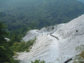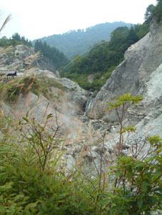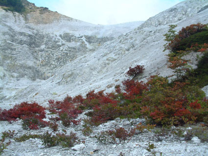 紅葉が始まる (噴煙が上がる河原毛地獄)